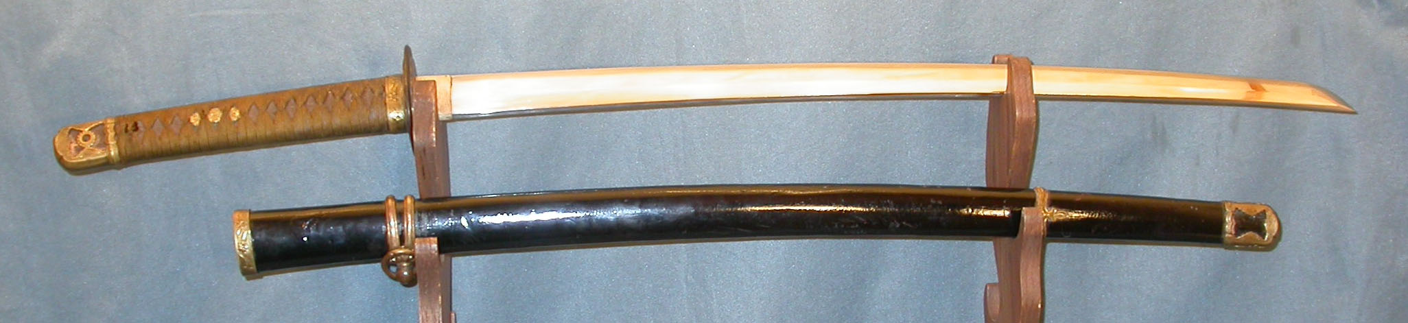 SOLD *** A WWII period wakizshi. 23.5 inch long with shingunto mounts. Very good polish. Asking $475 |